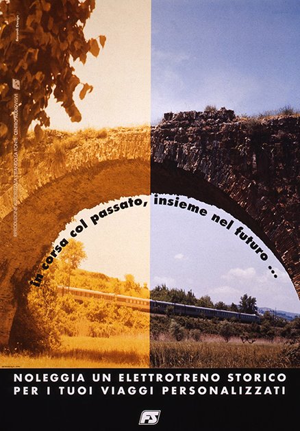 POSTER FOR THE ITALIAN NATIONAL RAILWAY PROMOTING THE RENT OF A HISTORIC TRAIN